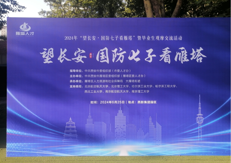 2024年6月25日,我司參加了在西安市雁塔區舉辦的“望長安——國防七子看雁塔” 暨畢業生觀摩交流活動。本次活動由中共西安雁塔區委組織部主辦,吸引了來自“國防七子”(北京航空航天大學、北京理工大學、哈爾濱工業大學、哈爾濱工程大學、西北工業大學、南京航空航天大學、南京理工大學)的優秀學子,場面熱烈,互動積極。